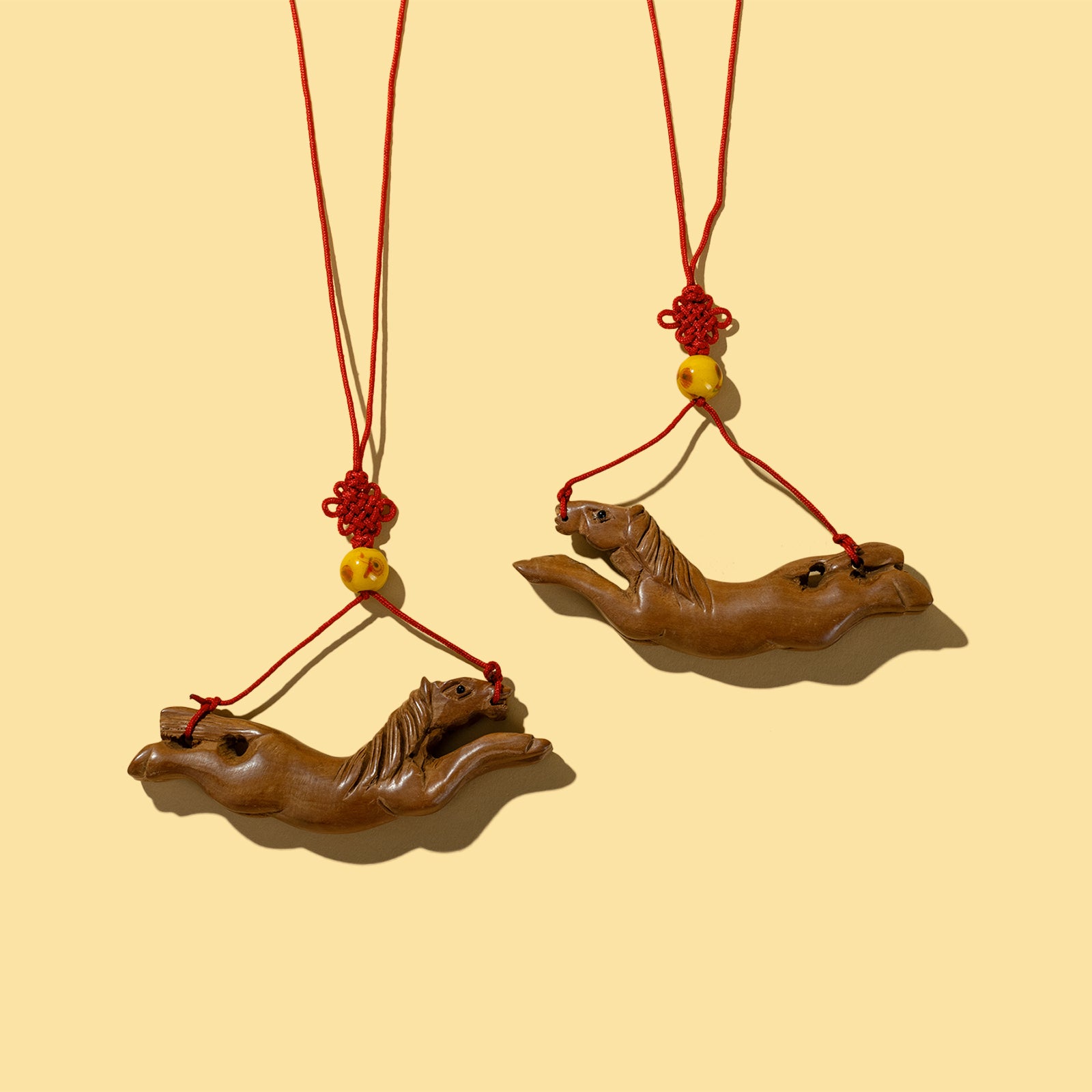 Every year, the W.O.W. family designs custom tassels for Lunar New Year. This year's designs feature earthy hues inspired by the double fire element of the horse year. The delicate silk tassels add a softness to the carved Suzhou jade horse, complemented by the silver, glass, crystal, and porcelain beads.