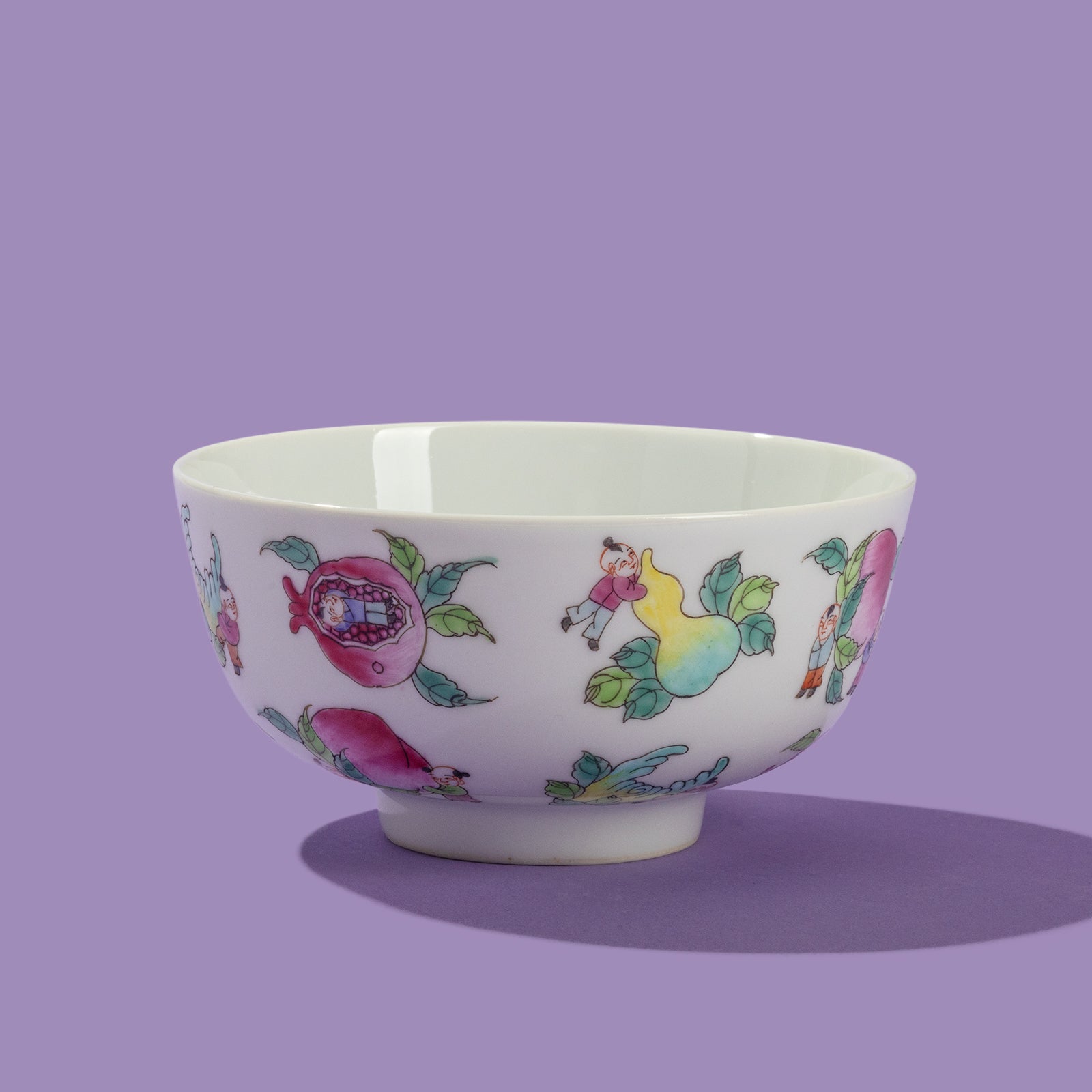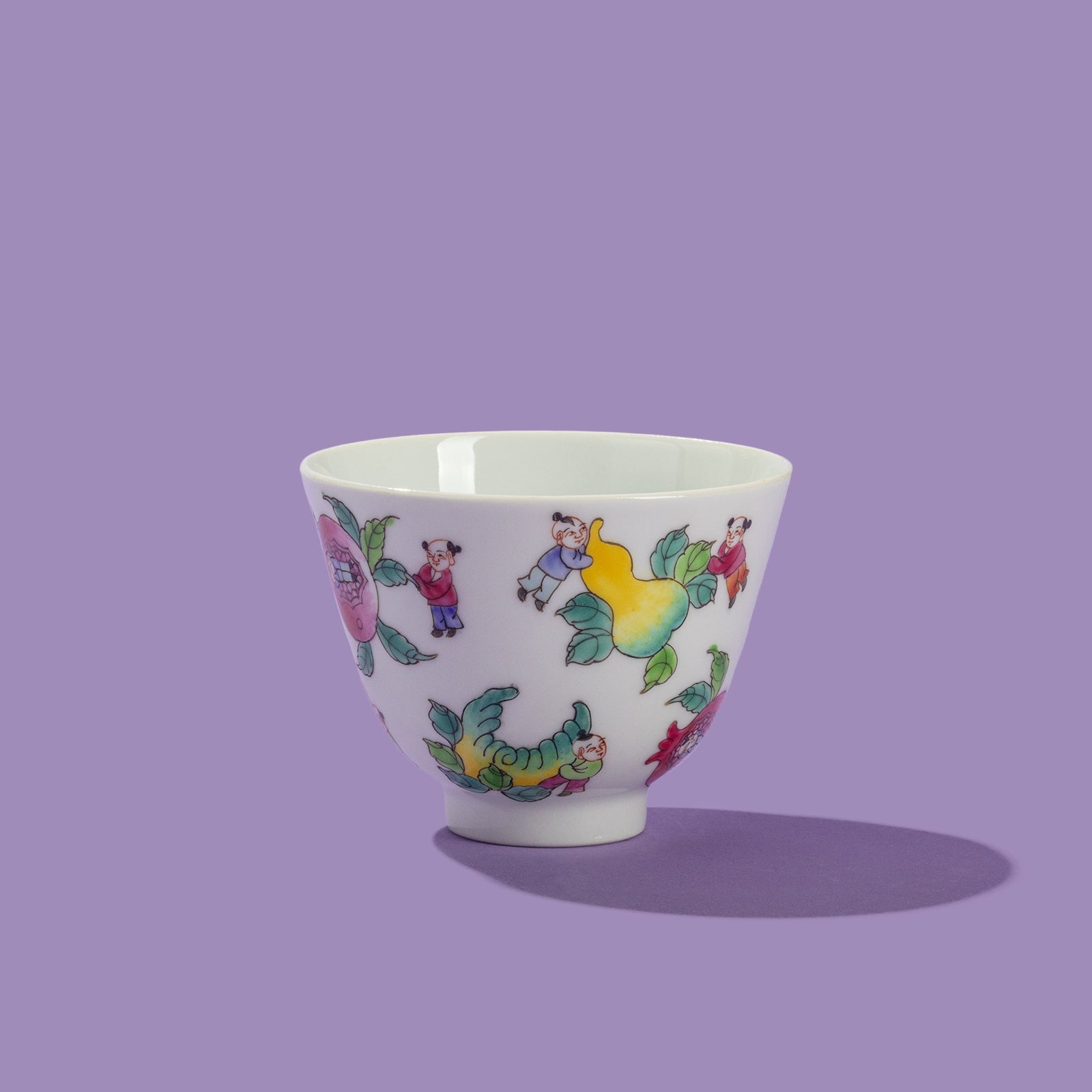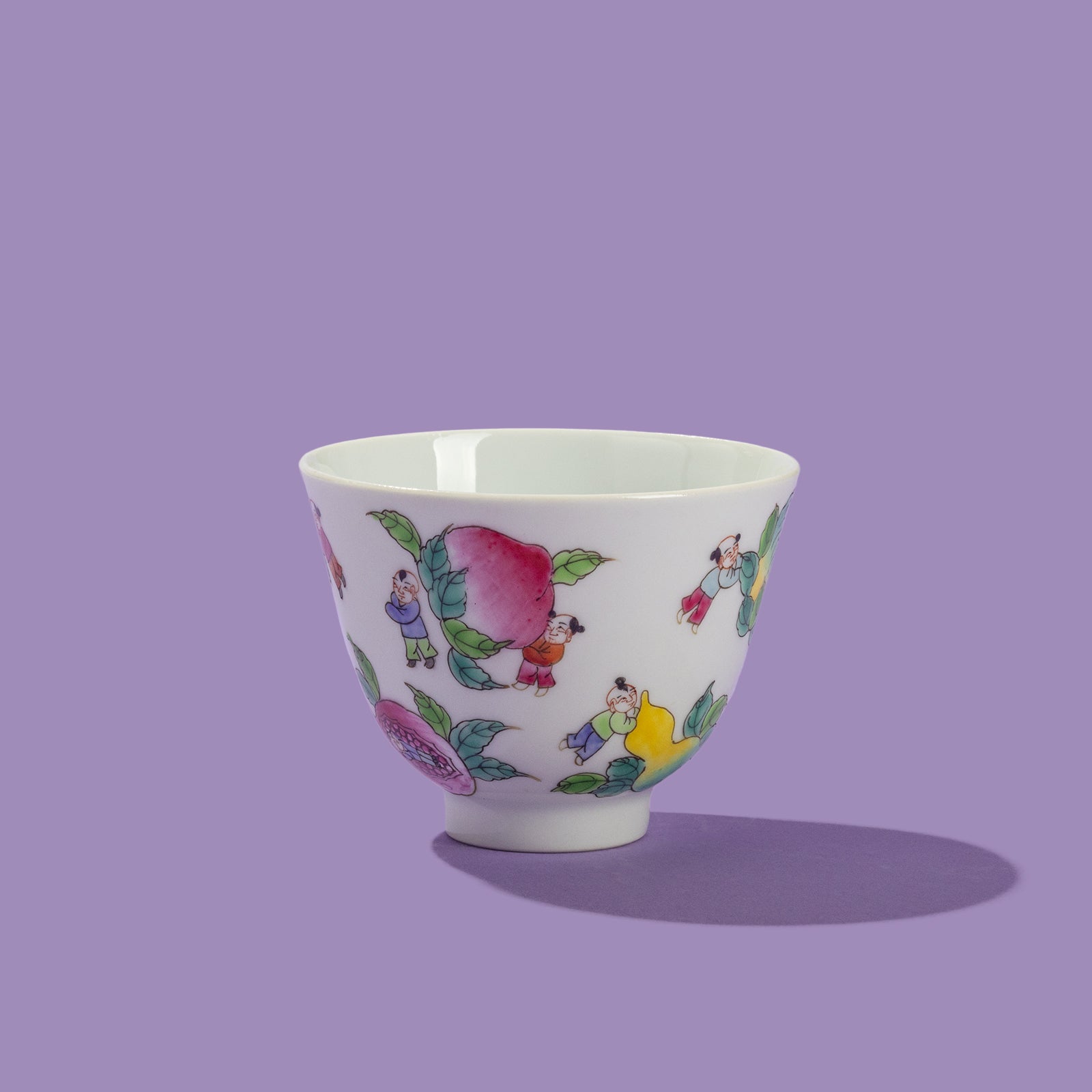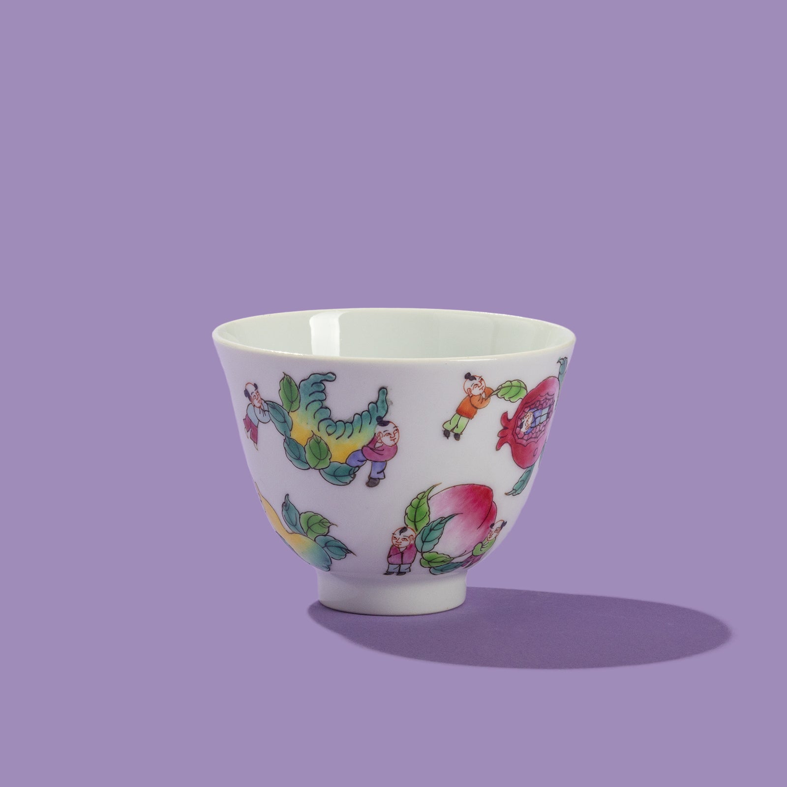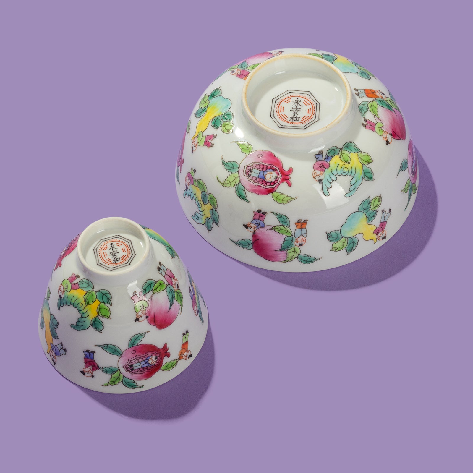 In honor of our centennial milestone at 26 Mott St., we designed our very own hand-painted porcelain pattern inspired by our centennial motifs. By reinterpreting traditional guangcai imagery, the children figures are depicted embracing the gourd, pomegranate, peach, and buddha's hand, which represent our intention for how we want to grow into our next 100 years here at 26 Mott St: anchored in our matriarchal roots, continuing to grow our legacy for Chinatown's future.